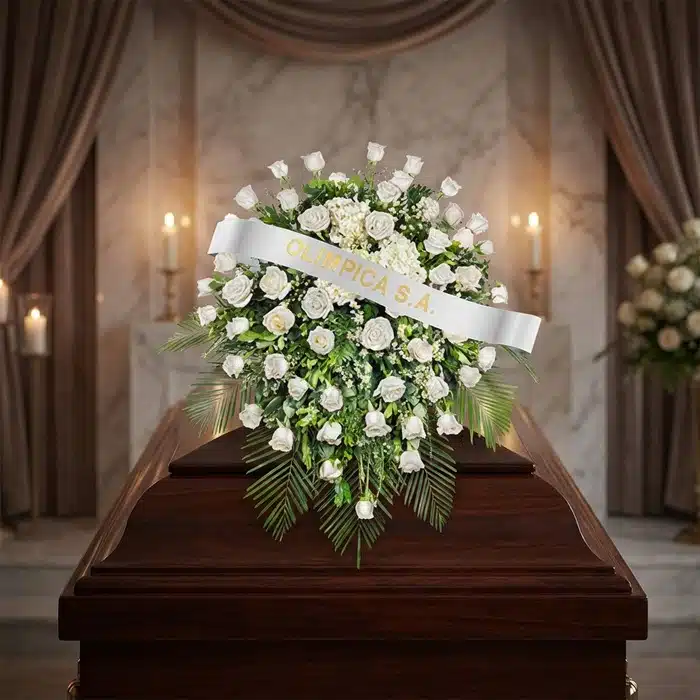 En estos momentos difíciles, un gesto de amor puede decirlo todo. Honra su memoria con nuestro cubre cofre en cascada de rosas blancas, un manto de paz y amor eterno 🤍. Cada rosa es un símbolo de respeto y un recuerdo imborrable.